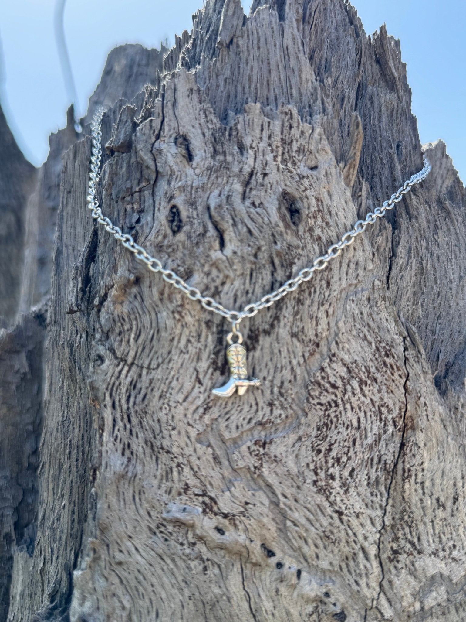 The Cowboy Boot Necklace is a fun and stylish way to show off your love for all things Western. Featuring a charming cowboy boot pendant, this necklace adds a touch of playful cowgirl flair to any outfit. It's a perfect accessory for everyday wear, concerts, rodeos, or just adding a little bit of Western spirit to your look.